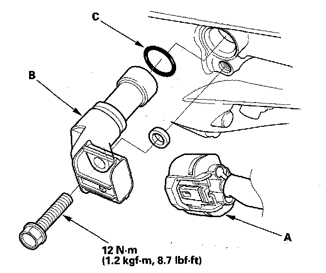 4. Install the sensor in the reverse order of removal with a new O-ring (C).