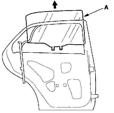 5. Remove the quarter glass (A). Take care not to damage the outer weatherstrip (B).