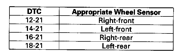DTC 16-21: Right-rear Wheel Sensor Installation Error (Start to 15 Seconds)