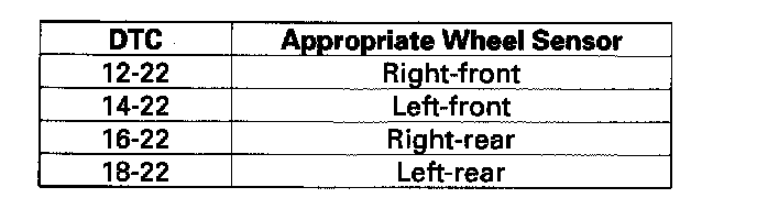 DTC 14-22: Left-front Wheel Sensor Installation Error (19 mph (30 km/h) or more)