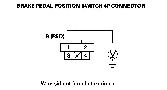 6. Check for voltage between body ground and the brake pedal position switch 4P connector terminal No. 1.