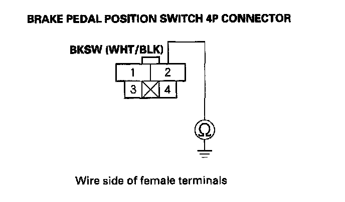5. Check for continuity between brake pedal position switch 4P connector terminal No. 2 and body ground.