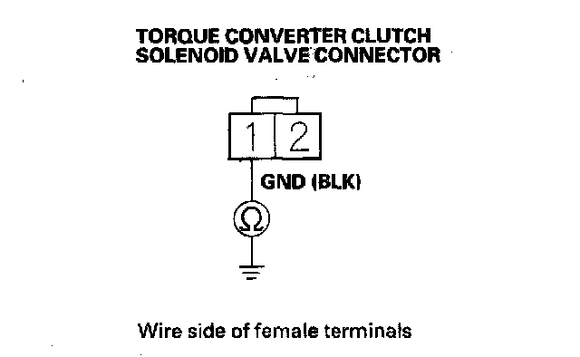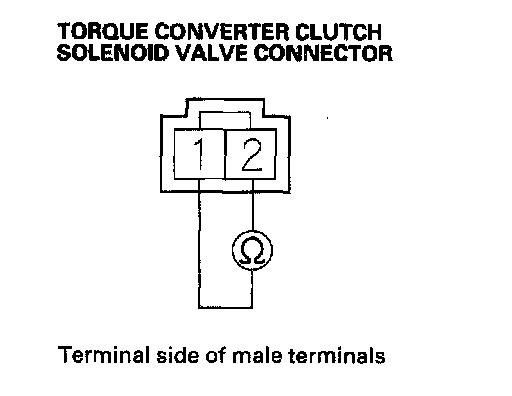 12. Measure torque converter clutch solenoid valve resistance at the solenoid valve connector.