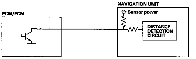 The navigation unit calculates the vehicle position (the driving direction and the current position) by receiving the directional change signals from the yaw rate sensor and the travel distance signals from the PCMs vehicle speed pulse (VSP) signal.