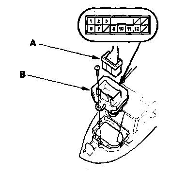 2. Disconnect the 13P connector (A) from the power mirror switch (B).