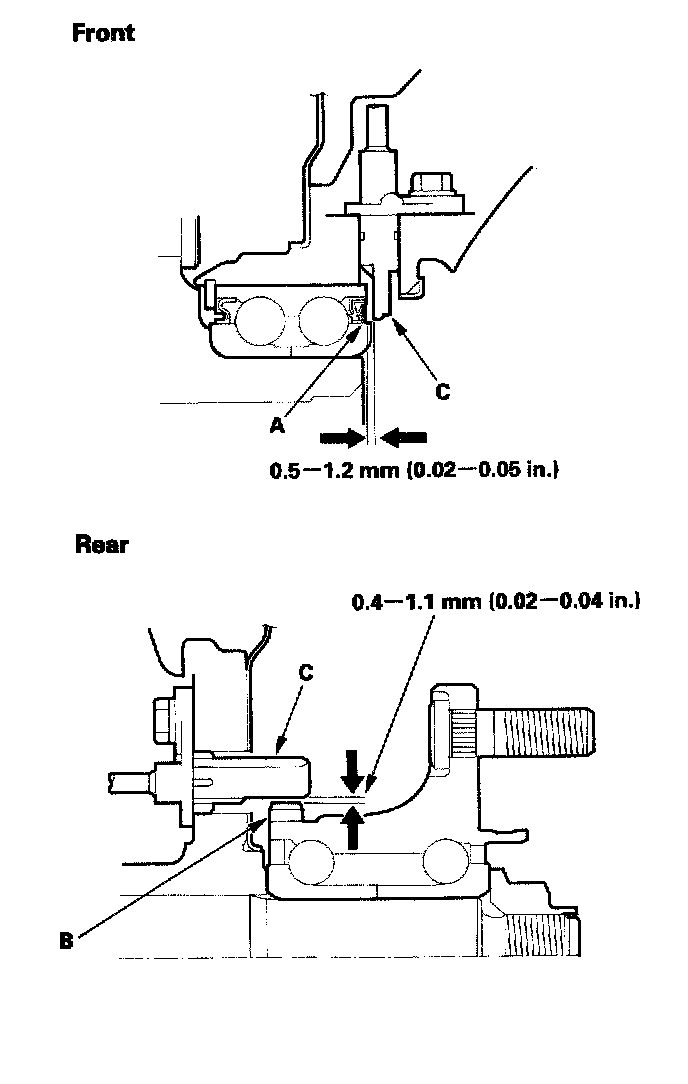 Rear: 0.4 - 1.1 mm (0.02 - 0.04 inch)