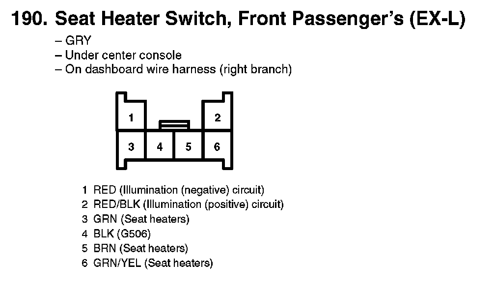 190. Seat Heater Switch, Front Passenger's (EX-L):