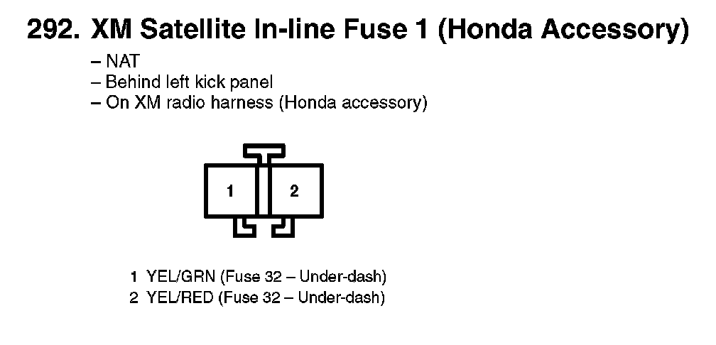 292. XM Satellite In-line Fuse 1 (Honda Accessory):