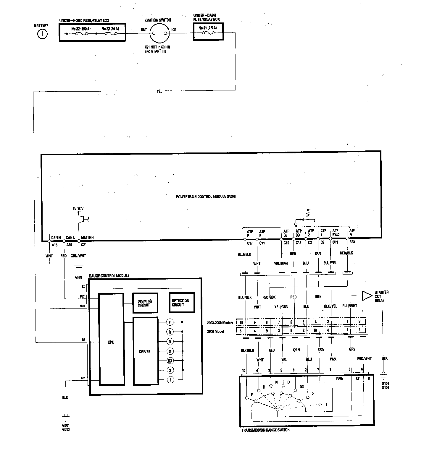 A/T Gear Position Indicator Circuit Diagram:
