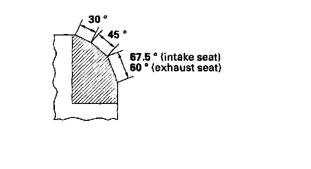 4. Bevel the upper edge of the seat with the 30° cutter and the lower edge of the seat with the 67.5° cutter (intake seat) or the 60° cutter (exhaust seat). Check the width of the seat and adjust accordingly.