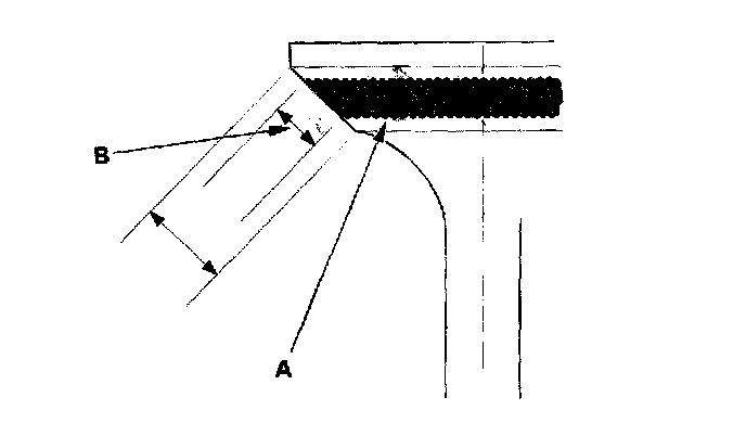 7. The actual valve seating surface (B), as shown by the blue compound, should be centered on the seat.