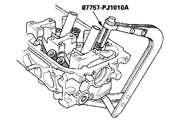 6. Install the valve spring compressor. Compress the spring and install the valve cotters.