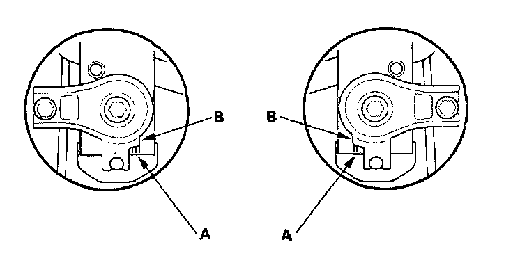 18. Tighten the front mount bolt (A), then install the front mount stop (B).