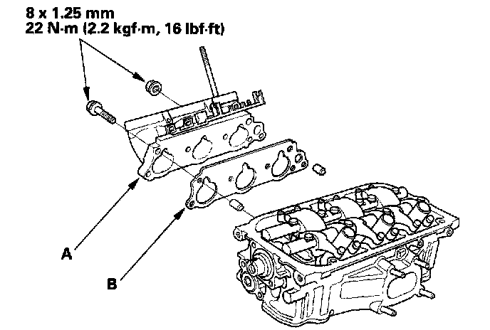 8. Set the rocker arm assembly in place, and loosely install the bolts. Make sure that the rocker arms are properly positioned on the valve stems.