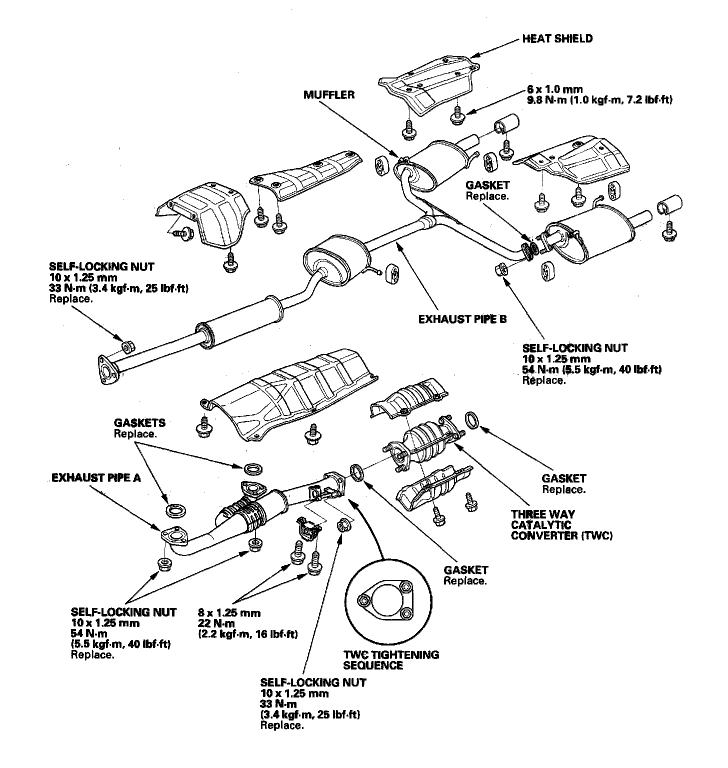 Use new gaskets and self-locking nuts when reassembling.
