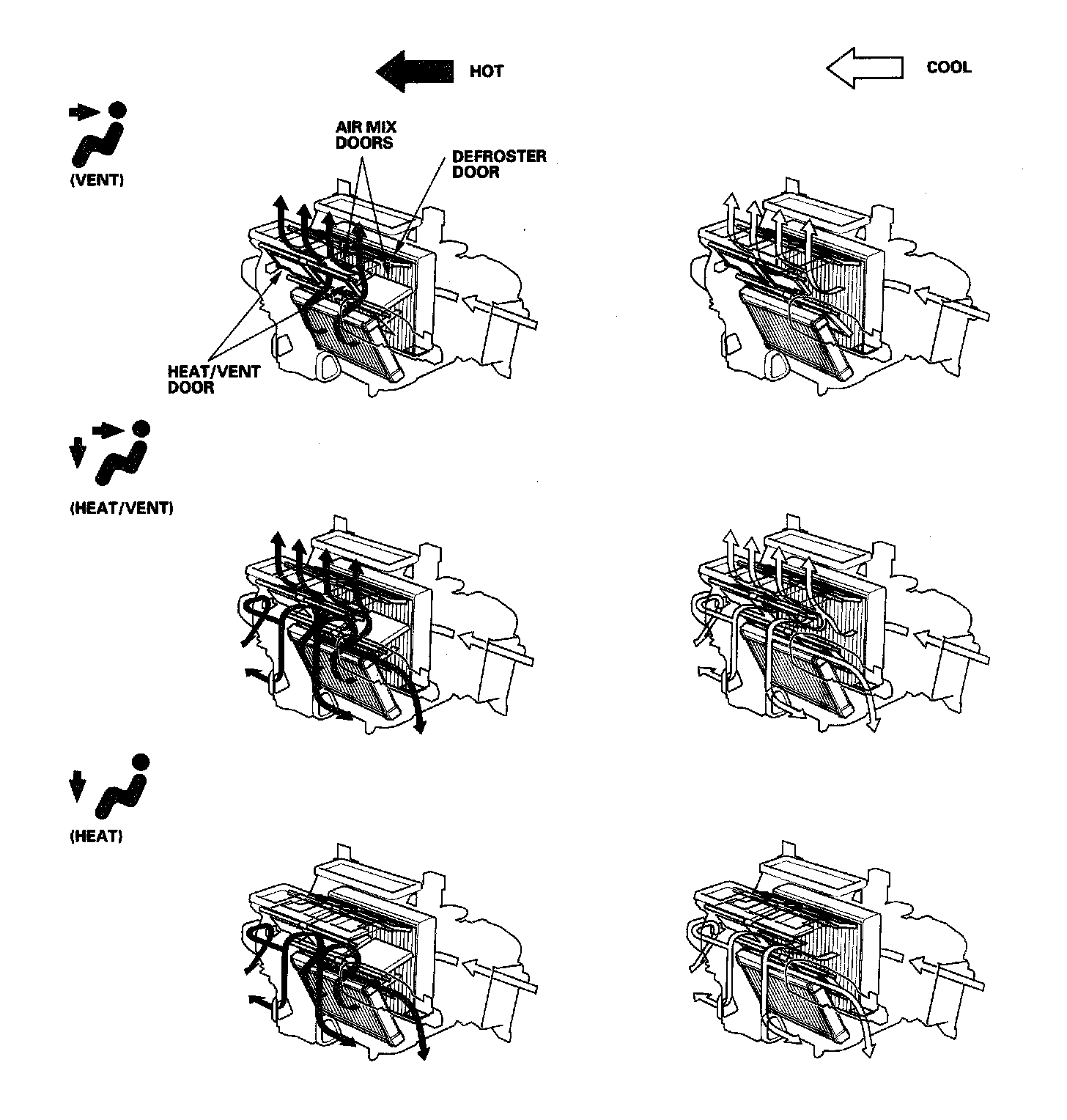 System DescriptionThe air conditioning system removes heat from the passenger compartment by circulating refrigerant through the system.
