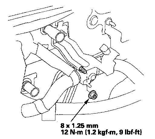 7. Remove the mounting nut from the heater unit. Take care not to damage or bend the fuel lines and the brake lines, etc.
