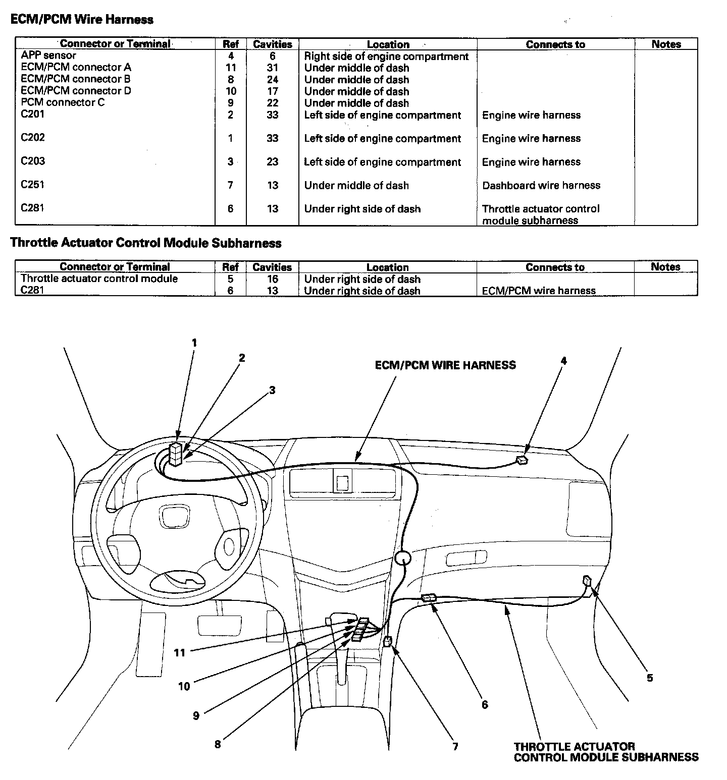 ECM/PCM Wire Harness/Throttle Actuator Control Module Subharness: