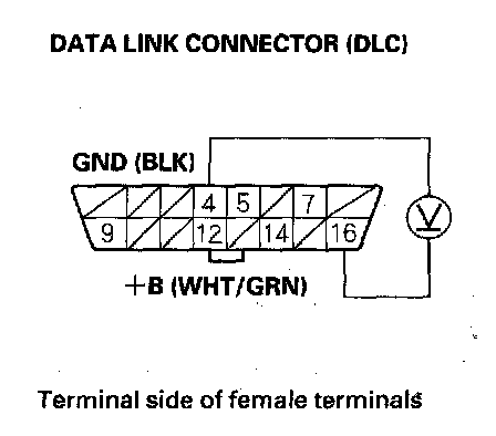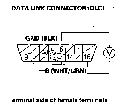 1. Measure voltage, between DLC terminal No. 16 and body ground.