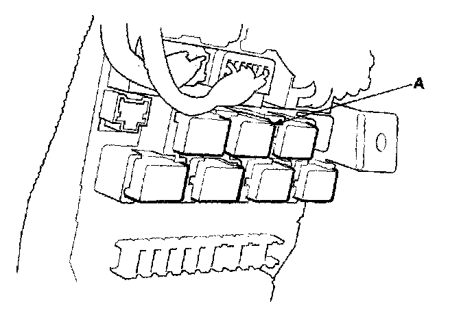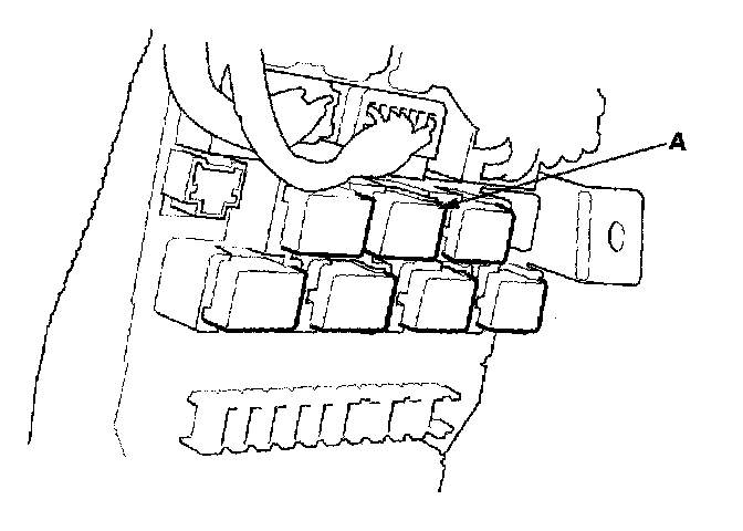 26. Remove the left kick panel, 2-door; 4-door, then remove PGM-FI main relay 1 (FI MAIN) (A) from the under-dash fuse/relay box.