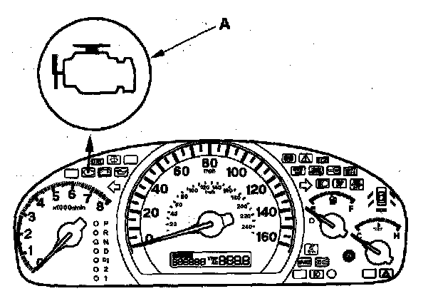 1. Start the engine, and check the MIL (A).