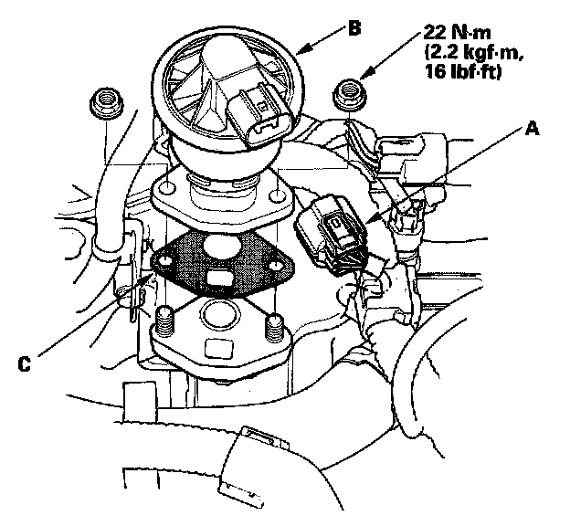 4. Install the valve in the reverse order of removal with a new gasket (C).