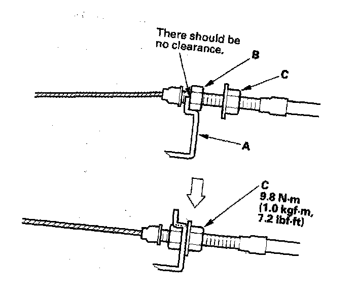 9. Position the adjusting nut on the other side of the bracket, then tighten the locknut (C).