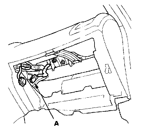 3. Disconnect the front passenger's airbag 4P connector (A) from dashboard wire harness.