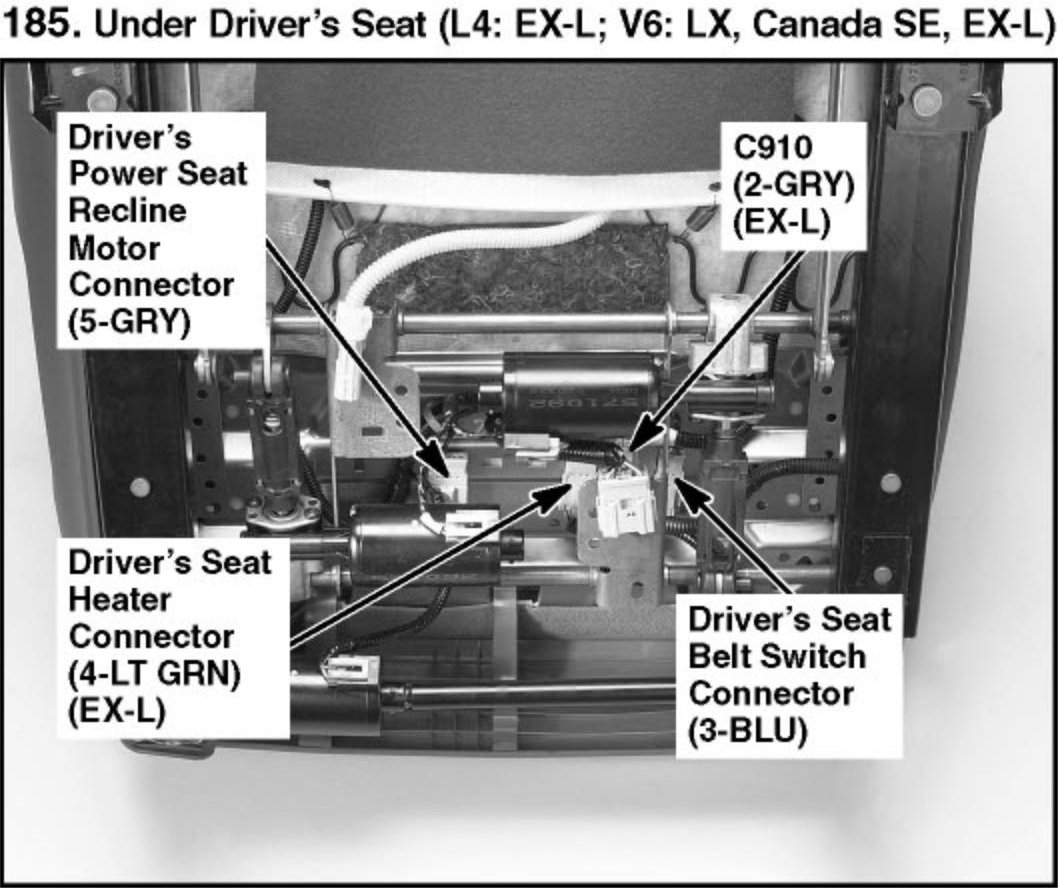 185. Under Driver's Seat (L4: EX-L; V6: LX, Canada SE, EX-L):