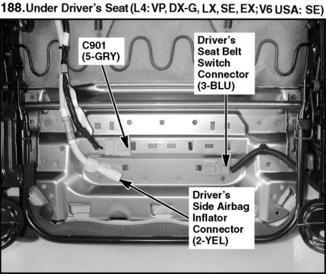 188. Under Driver's Seat (L4: VP, DX-G, LX, SE, EX; V6 USA: SE):