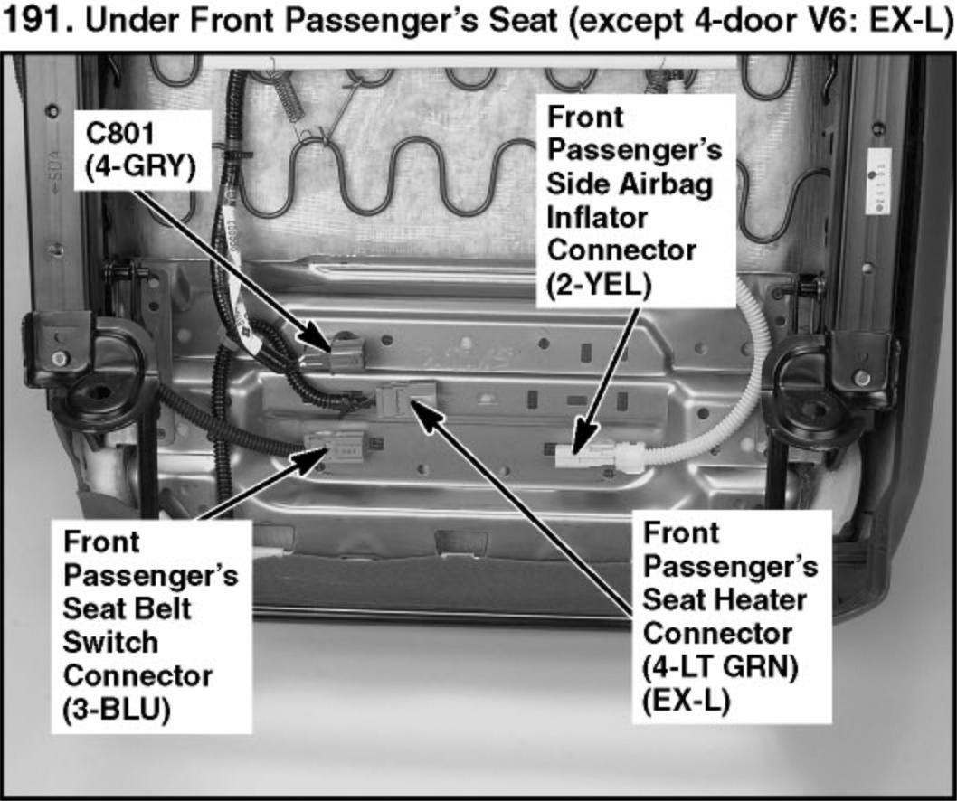 191. Under Front Passenger's Seat (except 4-door V6: EX-L):
