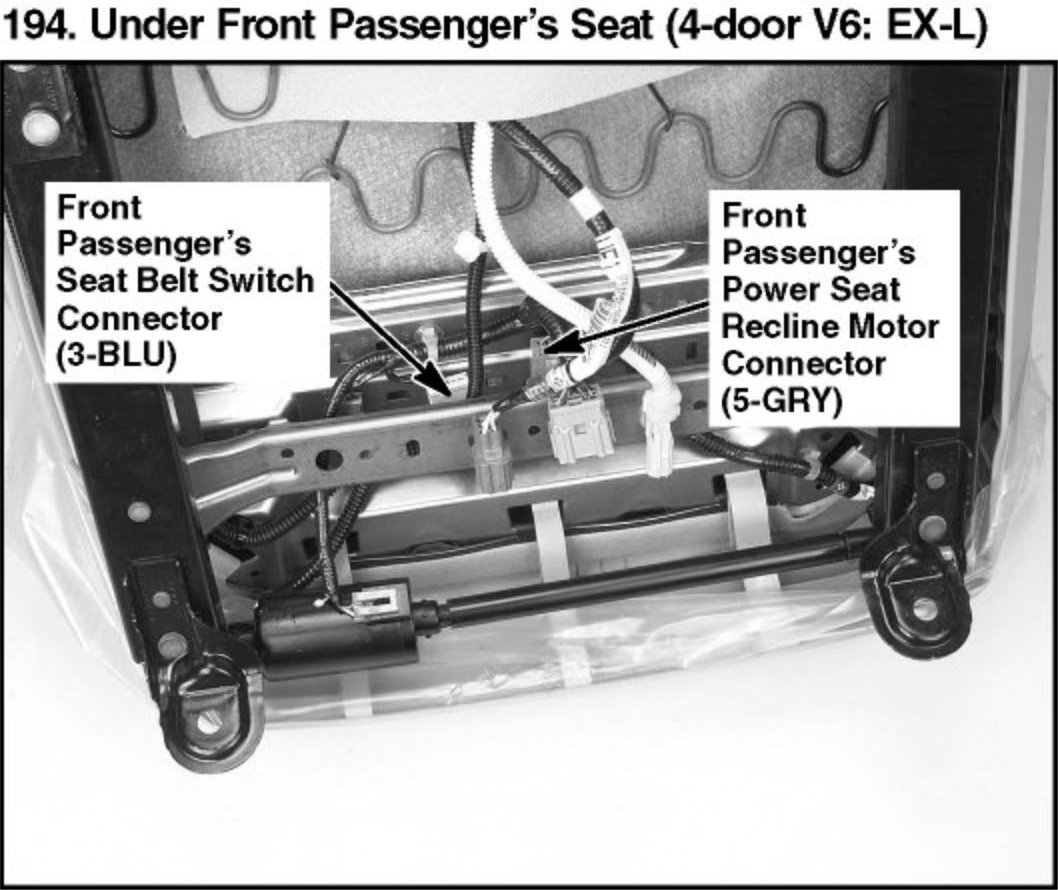 194. Under Front Passenger's Seat (4-door V6: EX-L):