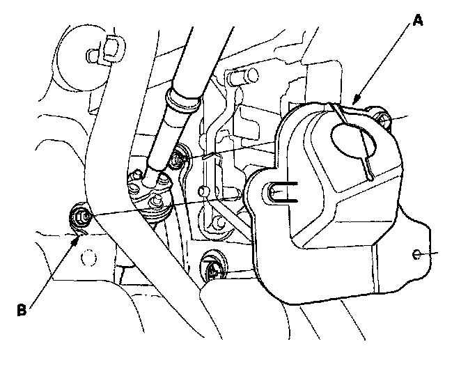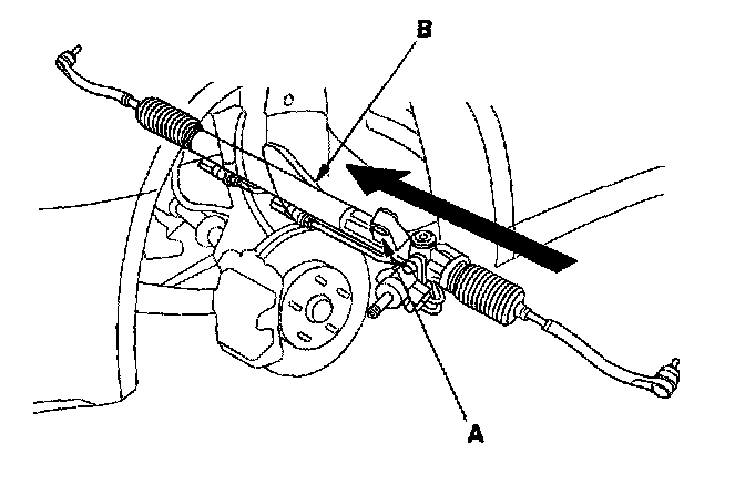 3. Pass the cylinder of the steering gearbox (B) through the wheelwell opening on the driver's side.