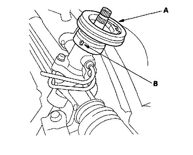 5. Rotate the steering gearbox so the pinion shaft (A) points upward.