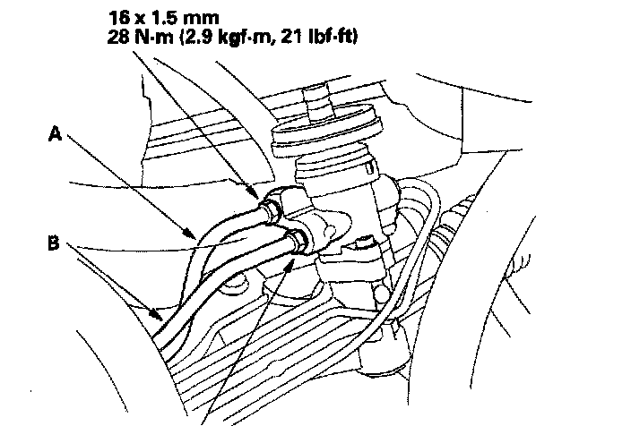 12. Connect the return line (A) securely, and tighten the flare nut to specified torque