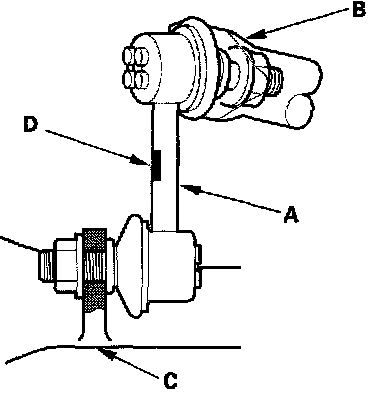 NOTE: The left stabilizer link has a yellow paint mark (D), while the right stabilizer link has a white paint mark.