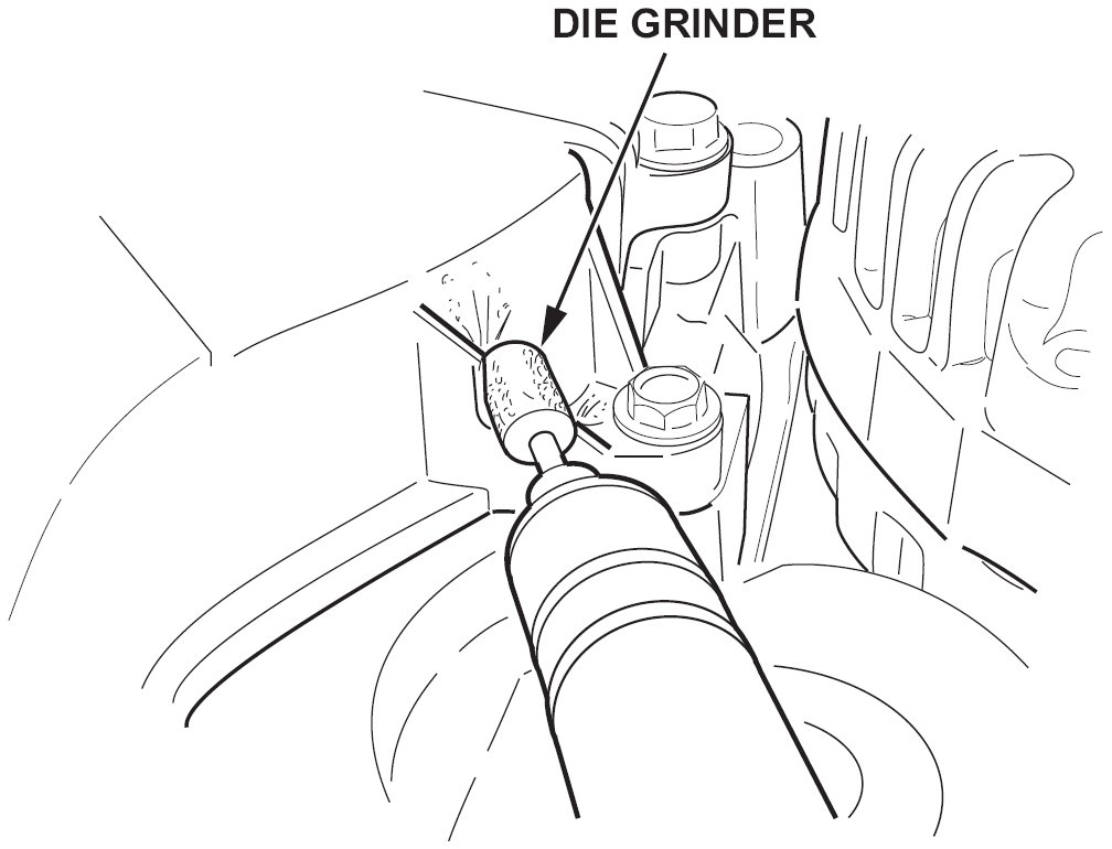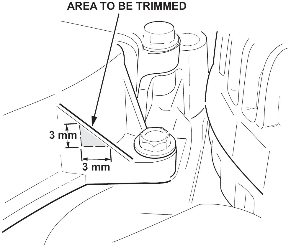 5. As shown below, use a die grinder or a utility knife to trim off a 3-mm section of the lower timing belt cover.