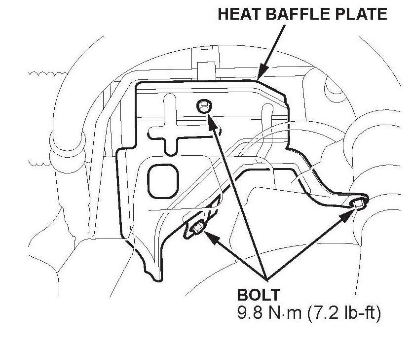 19. Reinstall the P/S heat baffle plate, and torque the bolts to 9.8 N.m (7.2 lb-ft).