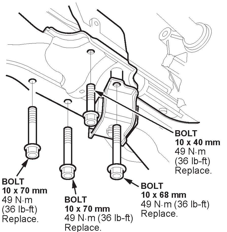 18. Install, and torque the four new rear engine mount bracket bolts to 49 N.m (36 lb-ft).
