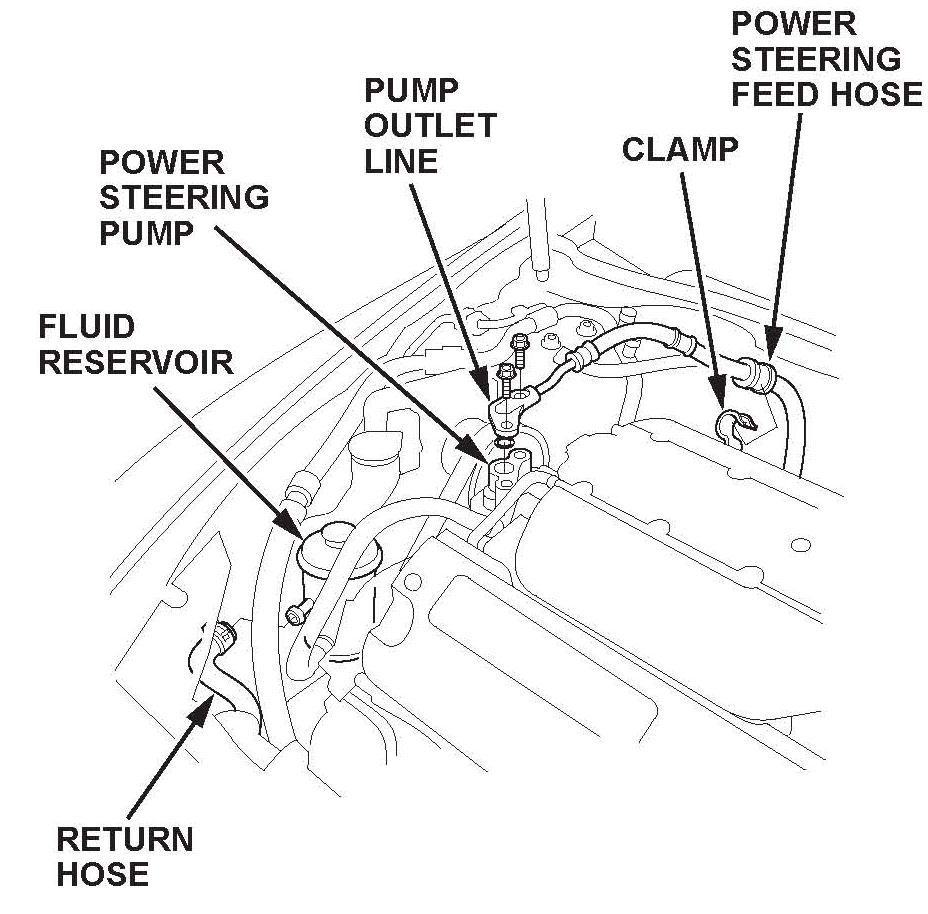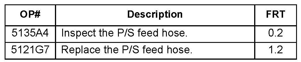 1. Carefully inspect the power steering feed hose for leaks or damage.