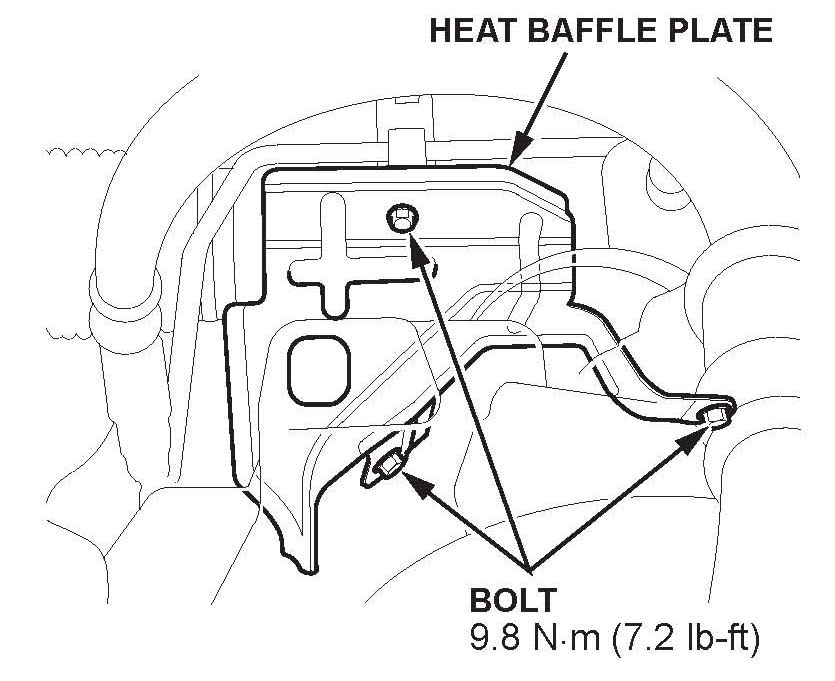 21. Reinstall the P/S heat baffle plate, and torque the bolts to 9.8 N.m (7.2 lb-ft).