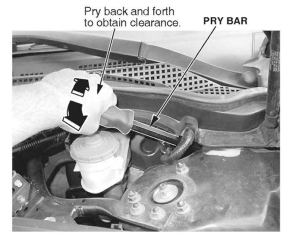 1. Insert a pry bar wrapped with a shop towel between the left upper bulkhead and the left damper tower.