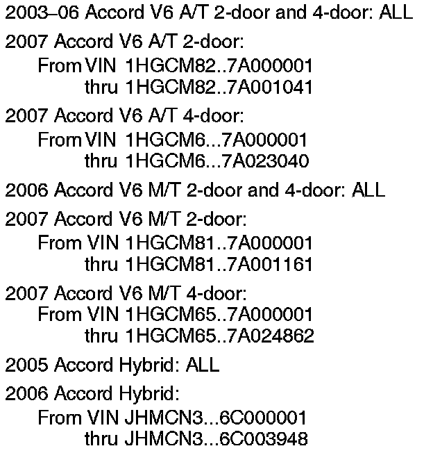 ^ For Accord Hybrid, Accord V6, and Odyssey, go to REPAIR PROCEDURE A: ACCORD HYBRID, ACCORD V6, ODYSSEY.