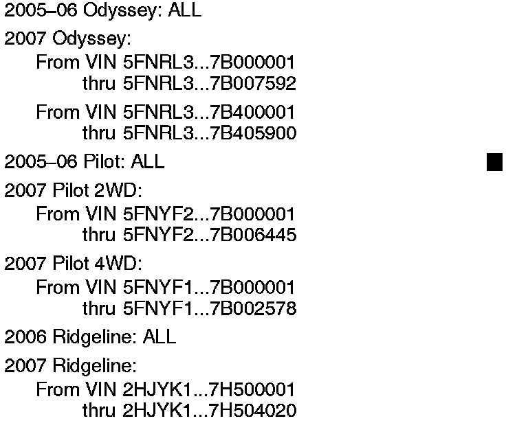 ^ For Pilot and Ridgeline, go to REPAIR PROCEDURE B: PILOT, RIDGELINE.