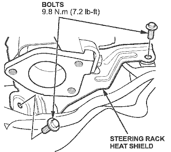 8. Accord Hybrid only - Reinstall the steering rack heat shield with its original bolts. Torque the bolts to 22 Nm (16 lb-ft).