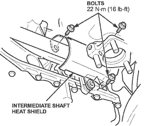 17. Reinstall the intermediate shaft heat shield bolts, and torque them to 22 Nm (16 lb-ft).