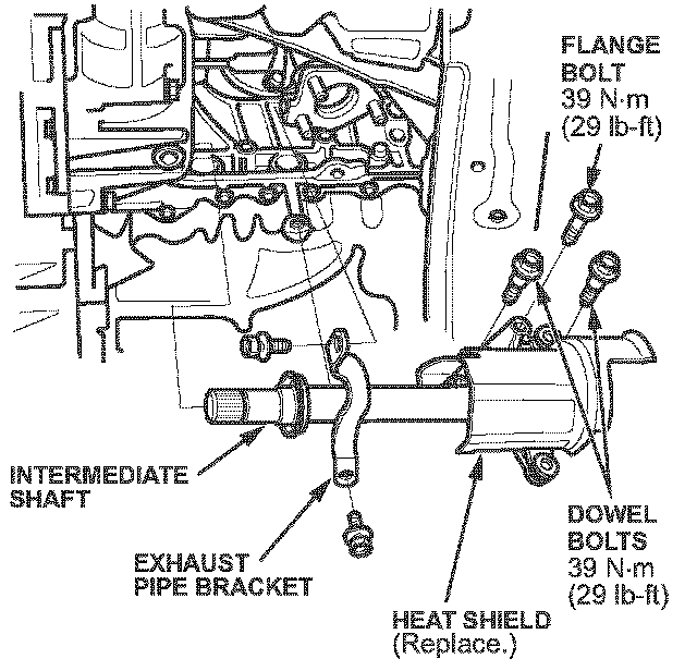 Replace the intermediate shaft heat shield and, if needed, any specified nuts or gaskets.