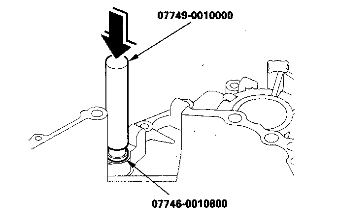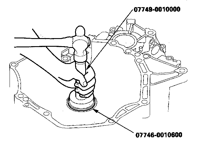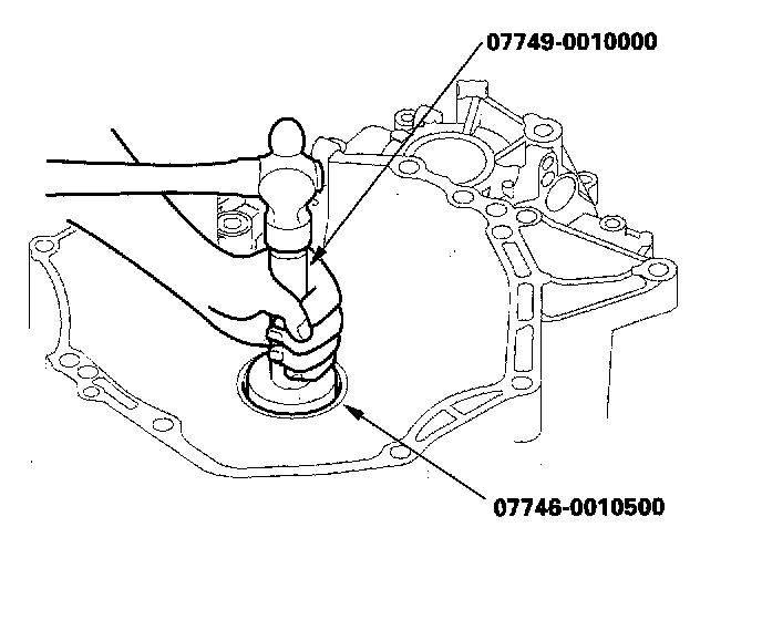 2. Install the new oil seal flush to the torque converter housing with the special tools.