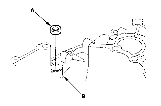 1. Remove the oil seal (A), from the torque converter housing (B).