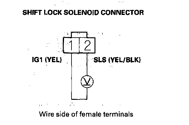 NO - Check for a blown No. 21 (7.5 A) fuse in the under-dash fuse/relay box. If the fuse is OK, repair open or short in the wire between the shift lock solenoid connector and the under-dash fuse/relay box.